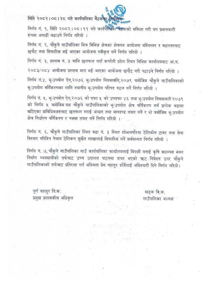 कार्यपालिका निर्णय २०८२/०८/२८