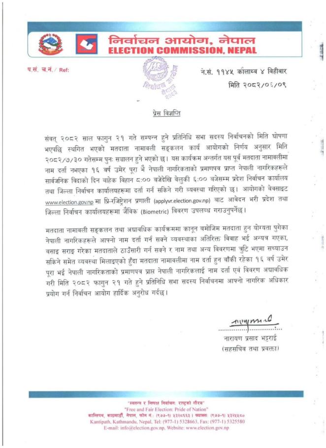 निर्वाचन आयोगको प्रेस विज्ञप्ति