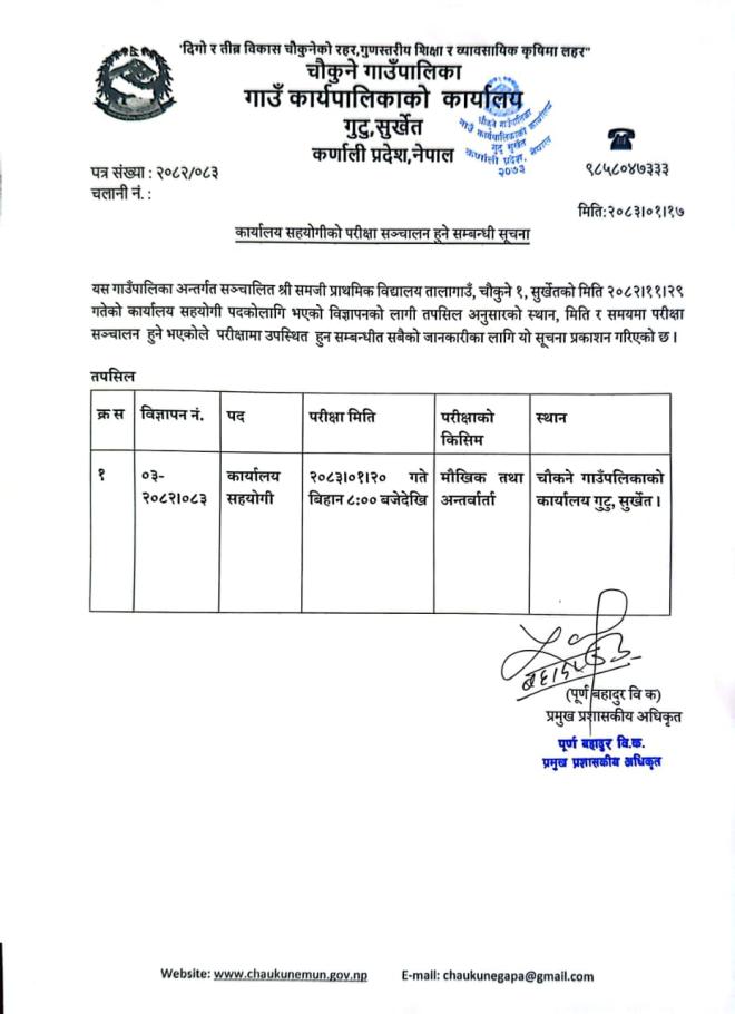 कार्यालय सहयोगीको परिक्षा कार्यक्रम सञ्चालन सम्बन्धी सूचना ।