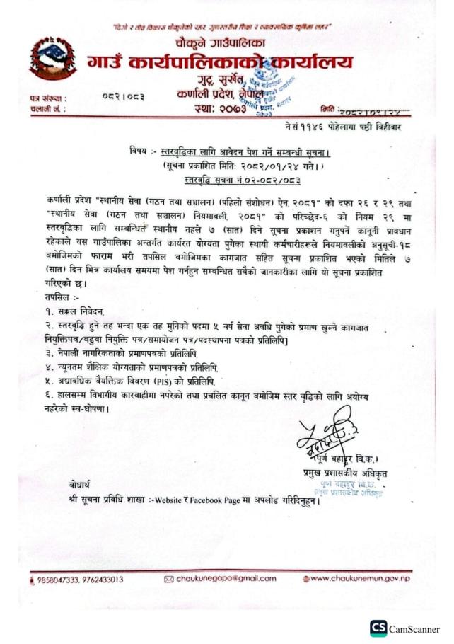 स्तरबृद्धिका लागि आवेदन पेश गर्ने सम्बन्धी सूचना ।