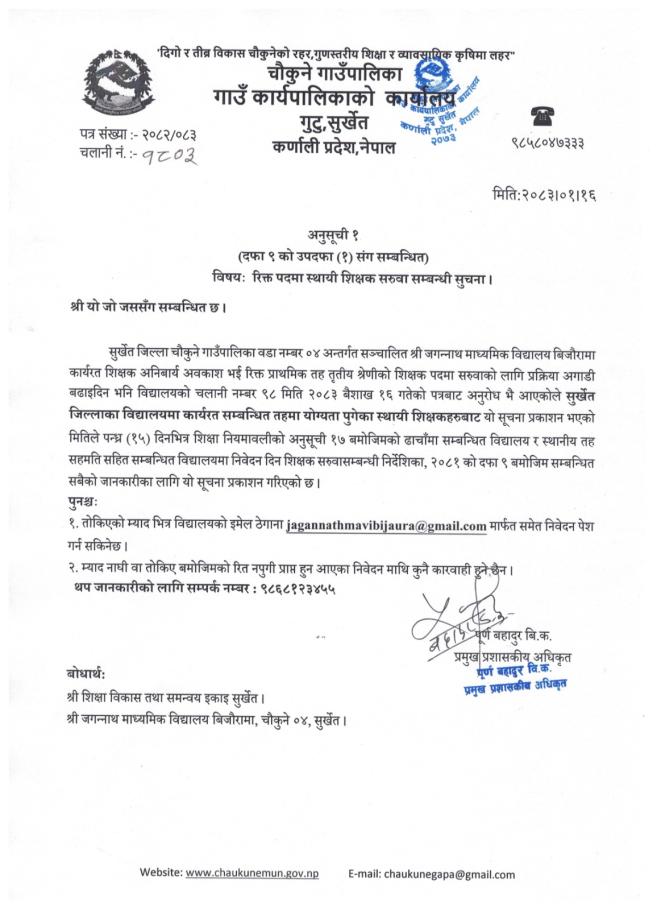 रिक्त्त पदमा स्थायी शिक्षक सरुवा सम्बन्धधी सूचना ।